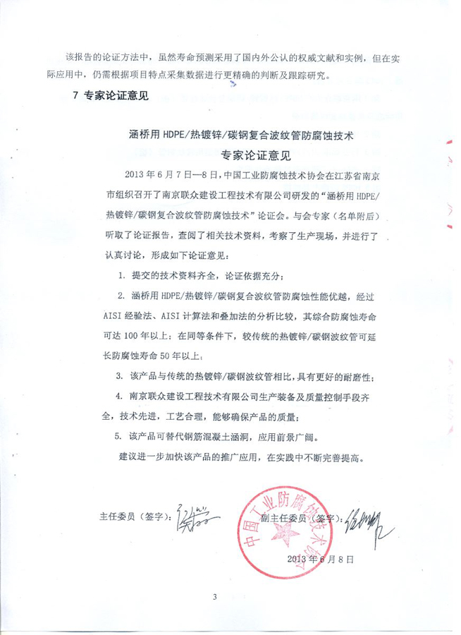 熱熔塑波紋鋼管耐久性論證報(bào)告