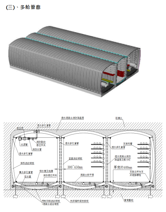 ② 拱形或圓形截面的管廊,內部管線的排布設計困難,管線容納量??;