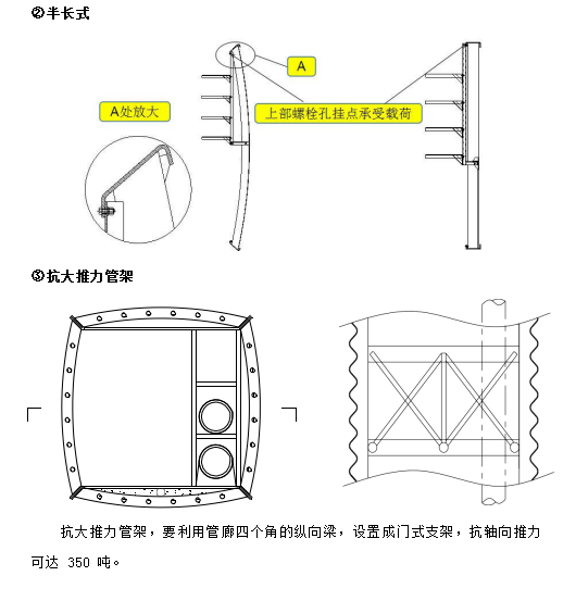 l 管架的著力點不設在管壁上,避免了鋼波紋板所不允許的點受力,同時管架可以承受重載;