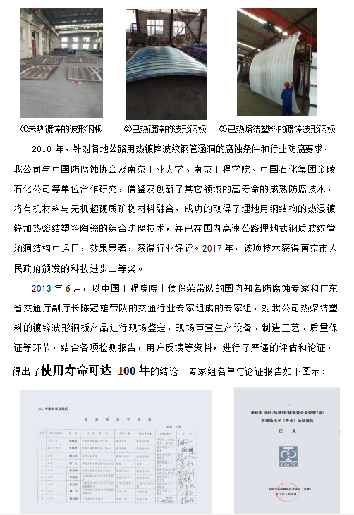 一、最早的波紋鋼綜合管廊在德國耶拿市,建于 1945 年,內部設置有蒸汽管道、給水管道和電纜,已使用 73 年,采用熱浸鍍鋅防腐,使用狀態(tài)良好,國內已經(jīng)有多批專家前往考察參觀。